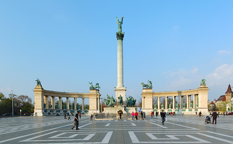 英雄廣場:紀念建城一千年而建,廣場的中央是千年紀念碑,碑頂端有一位天使手捧伊斯特萬國王加冕時的王冠,象徵著匈牙利由此轉為基督教國家。