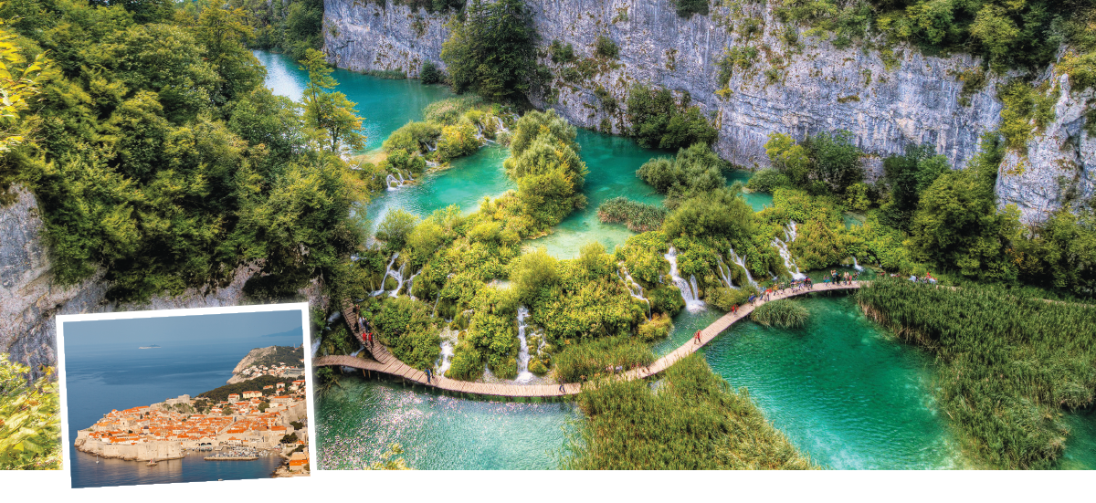十六湖國家公園:由16座大小不同的湖泊及瀑布分佈在蜿蜒的峽谷中而成,湖水顏色變化萬千,素有「歐洲九寨溝」美譽,並於1979年被列為世界自然遺產。 團友可沿著木製行人棧道及乘坐電船進入湖區,漫步欣賞沿途風景,美不勝收。