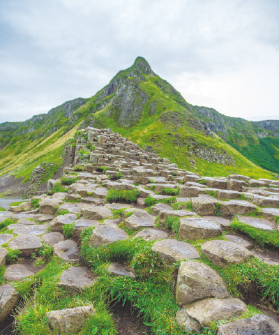 巨人堤道:得名自北愛爾蘭著名的傳說,1986年被列為世界自然遺產。四萬多塊的玄武岩柱綿延八公里,從懸崖邊形成階梯狀一直通往到海裡。
