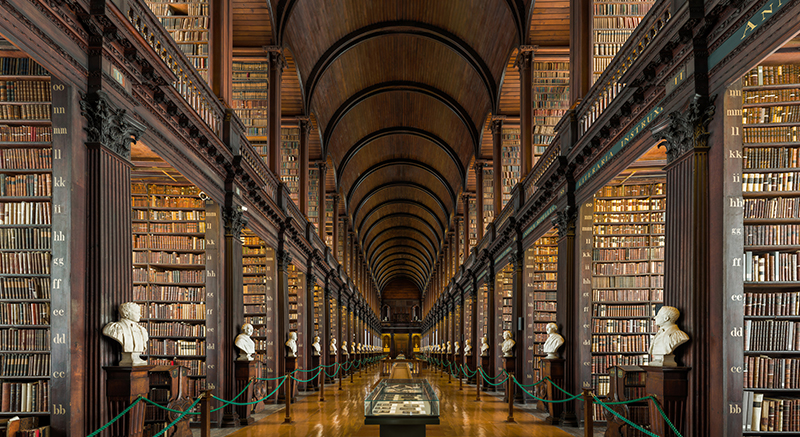 聖三一學院圖書館:是世界頂級研究圖書館之一,藏有愛爾蘭最豐富的書籍與印刷圖書600萬冊,其中以泥金裝飾的聖經手抄本《凱爾經》最為著名,被大眾認為是愛爾蘭最珍貴的國寶。