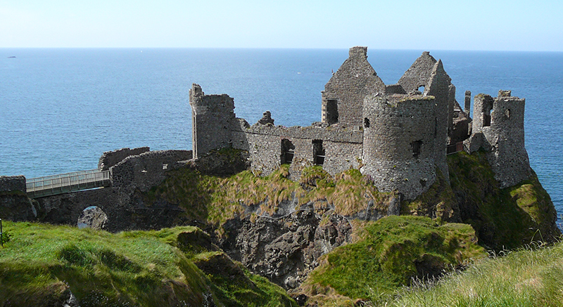 鄧路斯城堡 :是一座中世紀城堡遺蹟,位於安特里姆海岸邊,原是麥當奴家族的故居。無屋頂的廢墟景色在黃昏時,或在陽光照射下令人嘆為觀止!