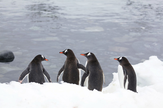 大約1小時後登上陸地, 陸地上全是Gentoo企鵝的世界, 當時是企鵝蛋孵化的季節, 至少有一半企鵝都留在巢中, 在此應用攝影家Daisy的指導, 拍攝企鵝要用低角度, 大家都扒在雪地上. 中午前返回船上, 要到Mud Room清潔登陸靴, 脫下登陸服裝.